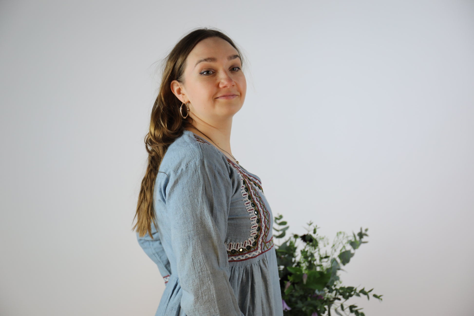 We've worked with our friends at United Artisans of Kutch to produce our very first collection of kala cotton dresses, delicately embroidered by a group of women embroiderers from the Dhebariya Rabari community.