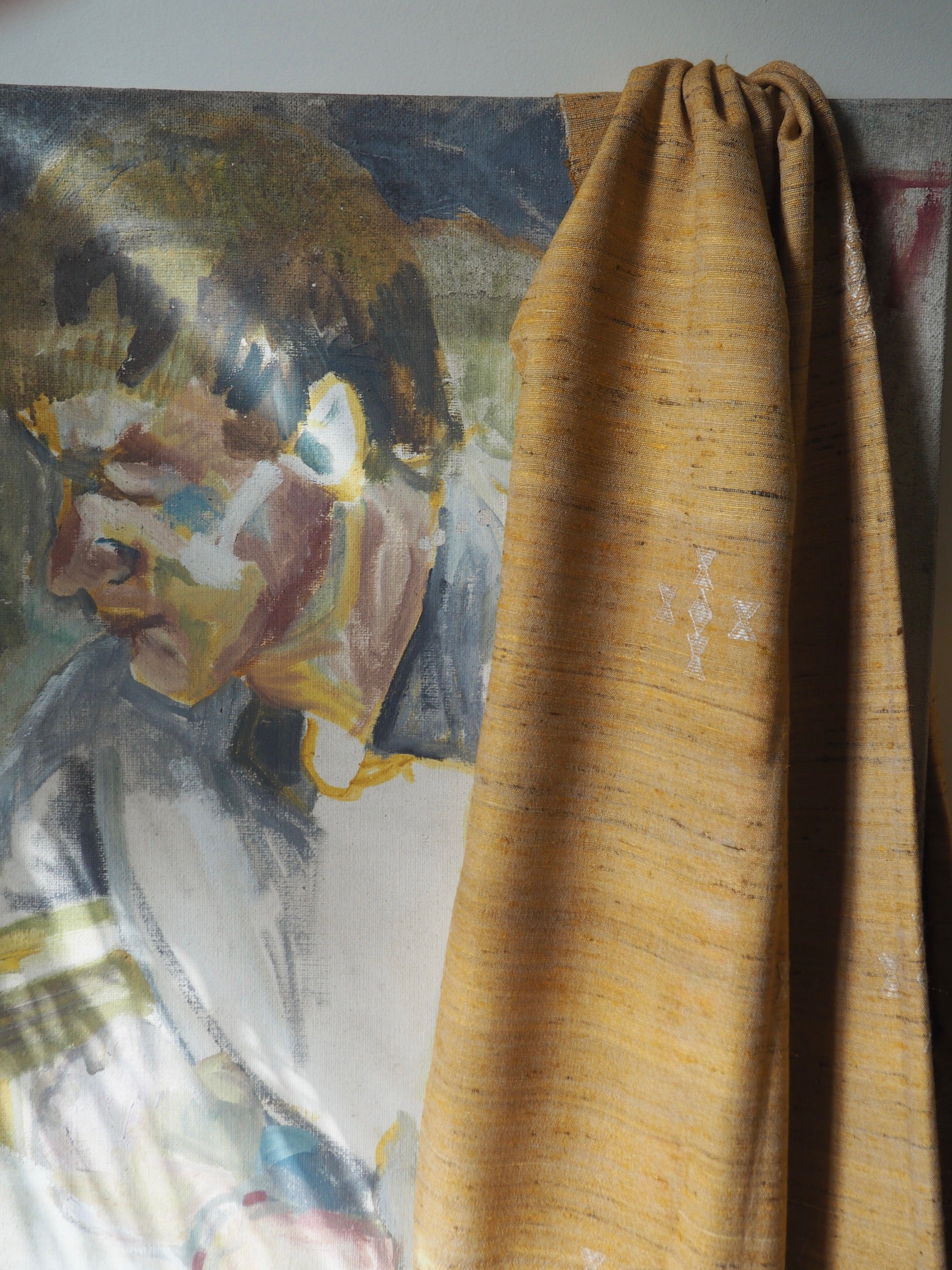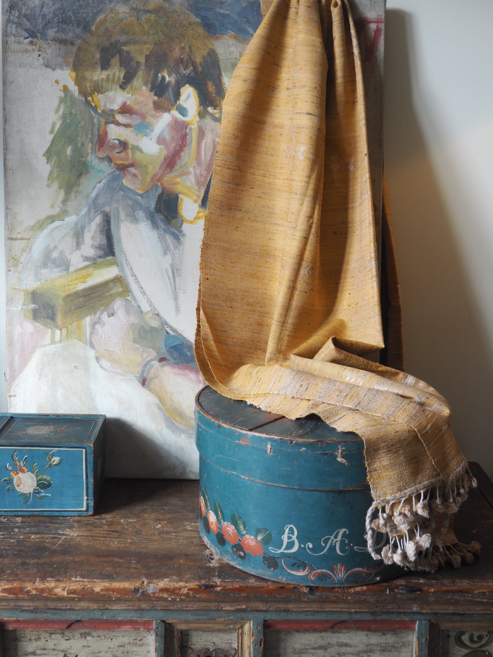 Woven from desi (local) wool and tussar silk, this throw comes in a soft butter yellow that highlights the natural sheen of the silk and the gentle texture of handspun yarn. The fabric has a smooth yet tactile surface, offering light warmth and an easy drape. Its warm, understated tone brings a subtle brightness to interiors — ideal for adding colour to neutral spaces, layering across a bed, or softening the lines of a chair or sofa.