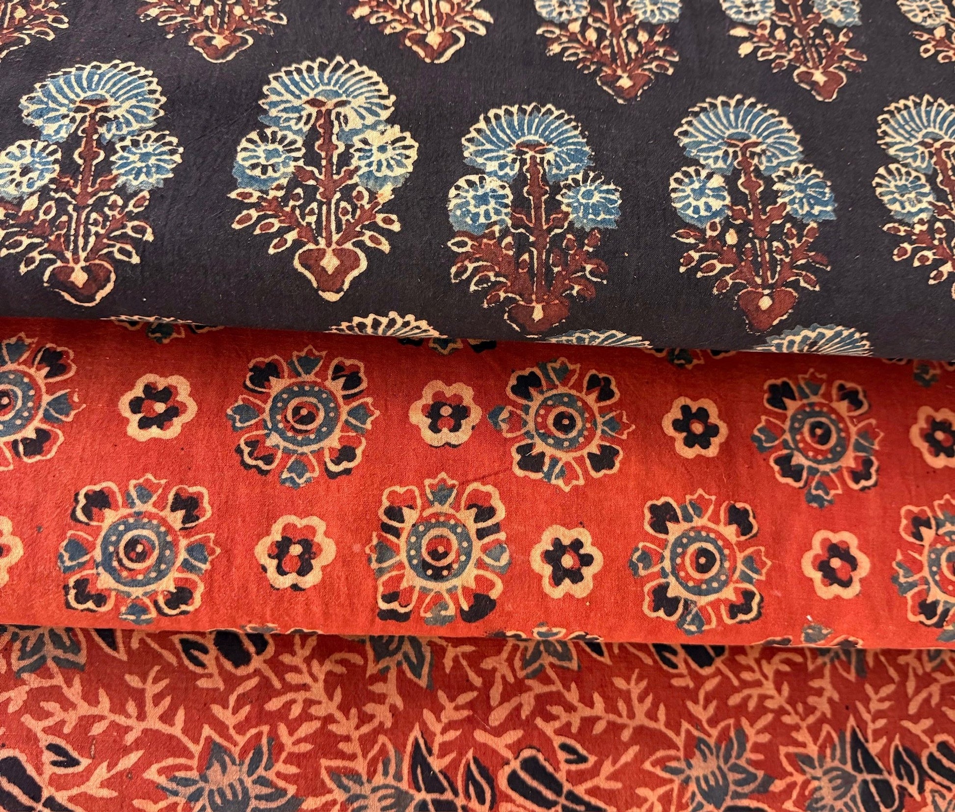 Neela is an iron-dyed Ajrakh fabric, perfect for clothing, interiors and crafts. The cotton is a light-weight cotton with no transparency.